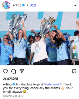 绝对的传奇,埃德森!感谢你所做的一切,尤其是那些助攻。(你的emoji风格,一如既往)